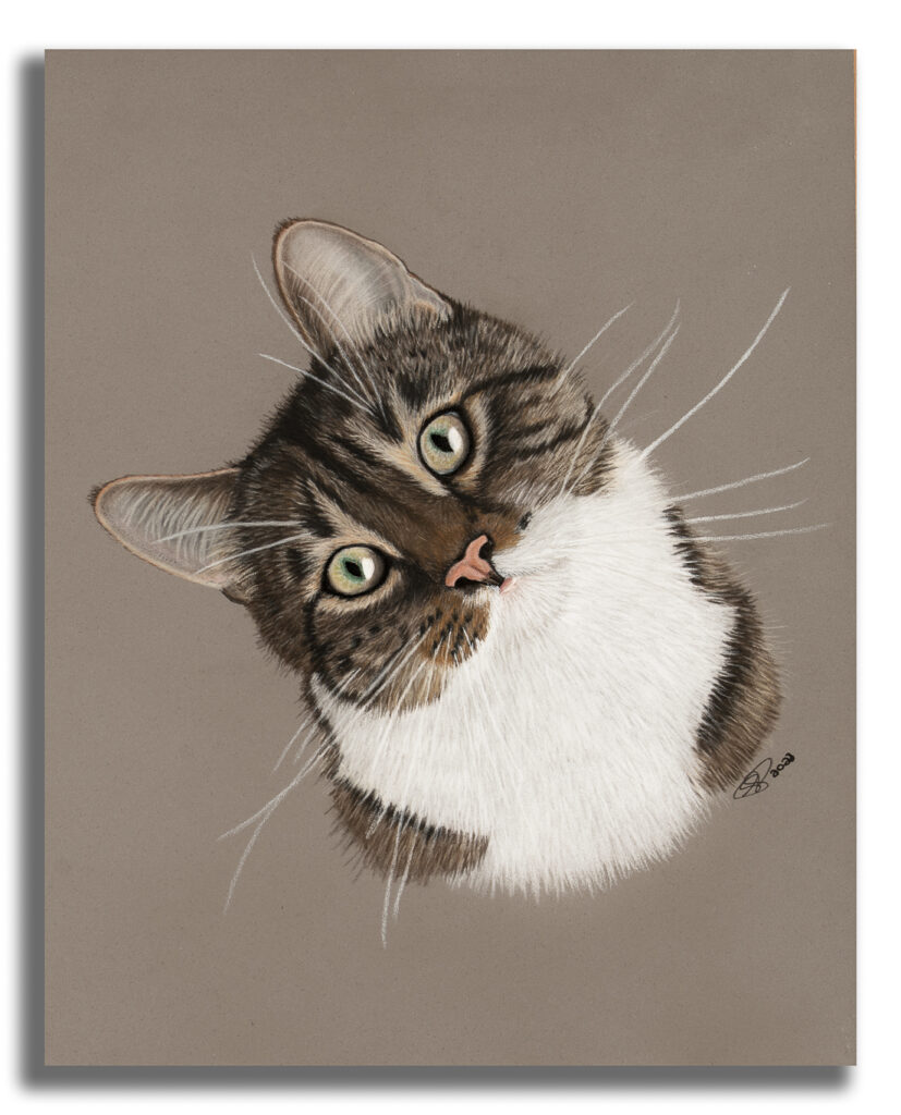 Avant chaque réalisation, un travail approfondi d’échange et de compréhension est mené afin de cerner la personnalité du sujet et la relation émotionnelle qui l’unit à son propriétaire. Cette étape essentielle me permet de capter et de retranscrire avec précision l’âme et l’élégance du sujet dans chaque détail du portrait.